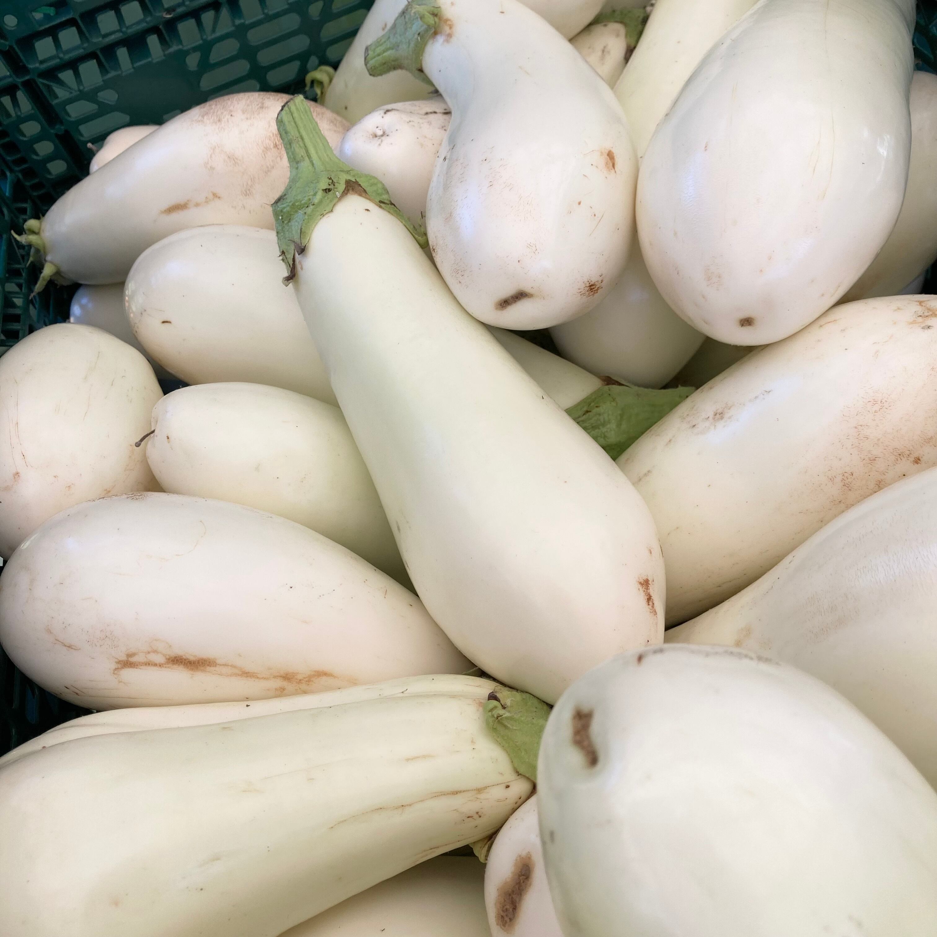 ※ 白なすは風で葉などが擦れて皮にカサブタが出来たものや葉の影で白くなりきれなかったものなど擦れ傷など皮が硬くなる場合が多くあり(画像4枚目ご参照)栽培、流通が難しい野菜です。